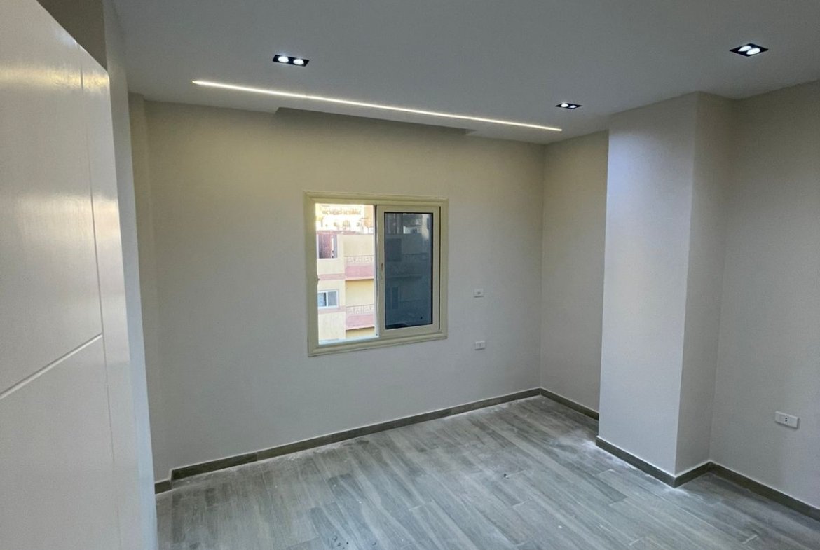 الشقة تتميز بتصميم عملي وتهوية ممتازة بدون مناور، مع تشطيب فاخر يجعلها جاهزة للسكن الفوري.