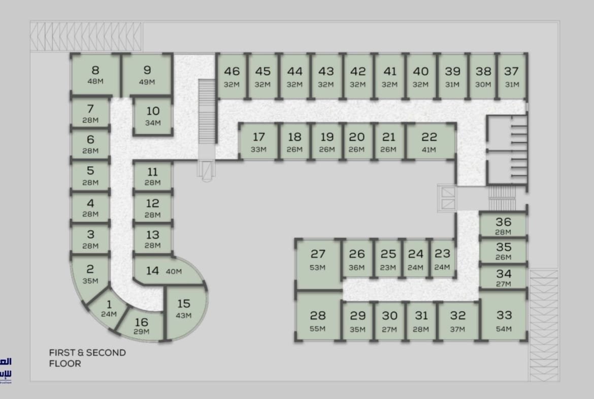 • المساحات: تبدأ من 25 متر.
